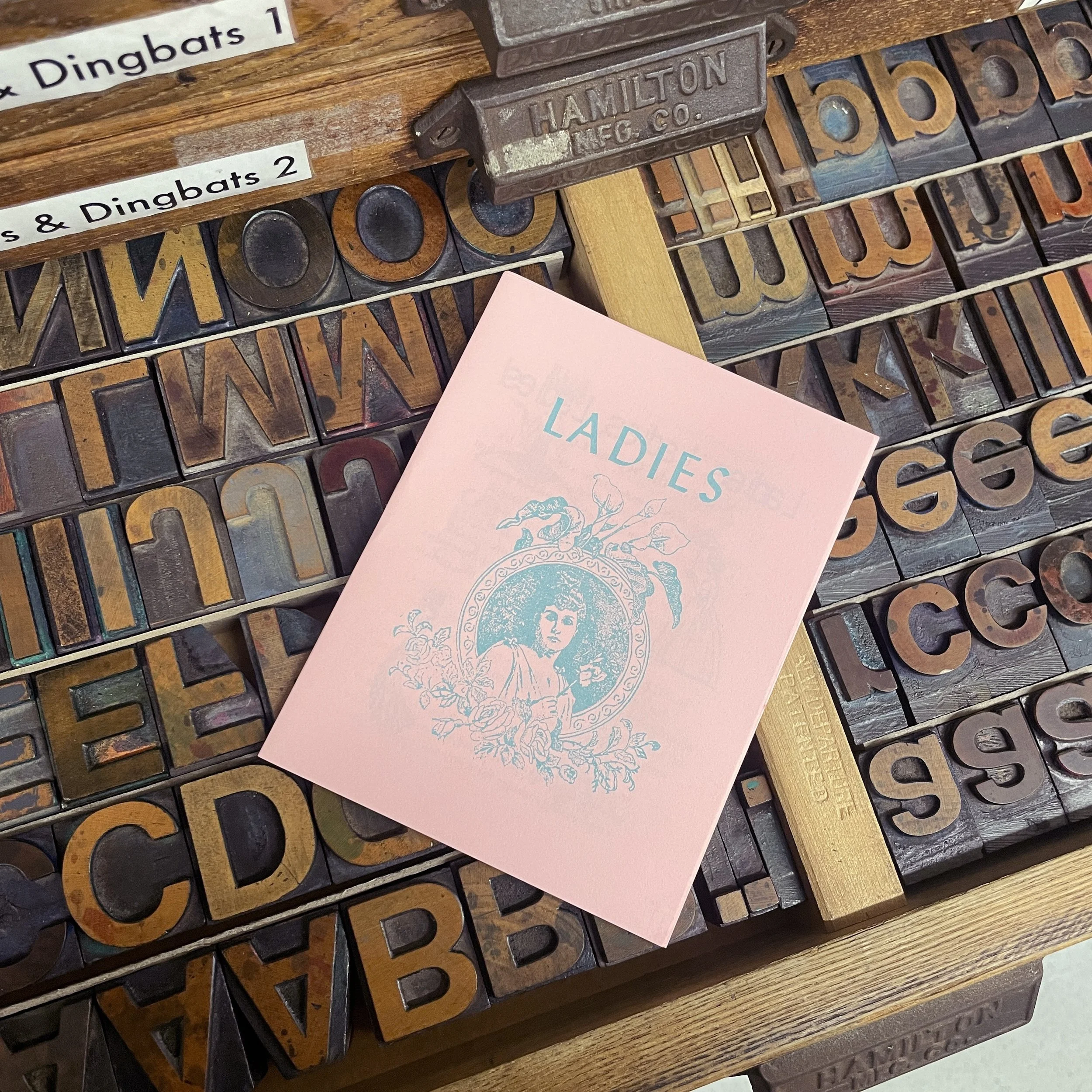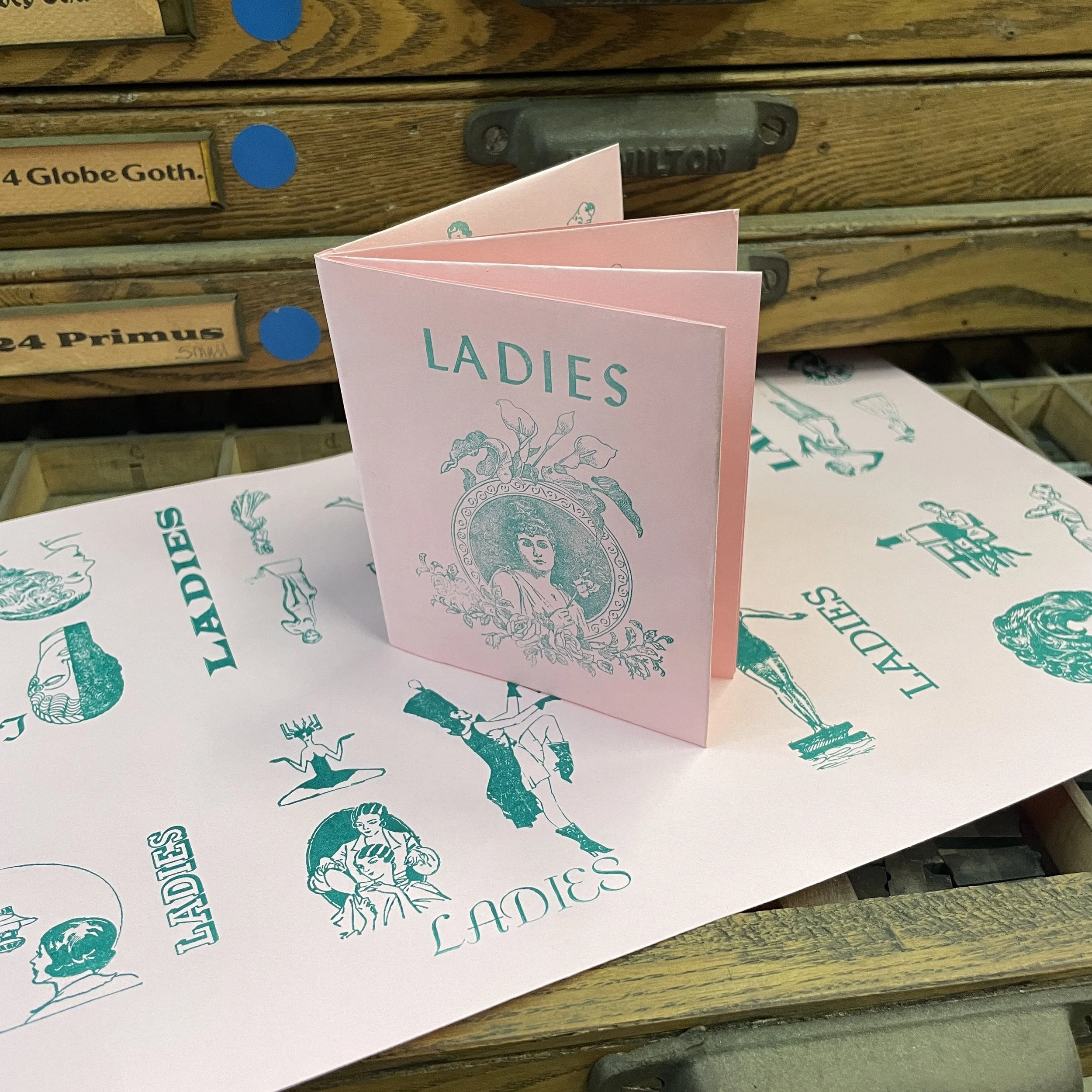 Ladies, Ladies, Ladies. Second Edition, 2024. Risograph reproduction of the original letterpress zine with a new introduction.